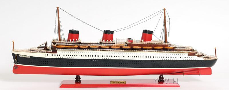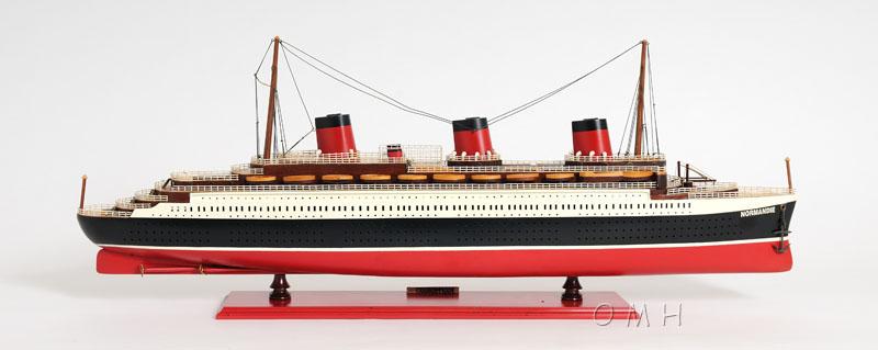 The T.S.S. NORMANDIE was one of the finest ocean liners ever produced by France. Have it displayed beautifully in your home or office! Master craftsmen handcraft these highly detailed wood models from scratch using historical photographs, drawings and original plan. They are built to scale with high-grade wood such as: western red cedar, rosewood, and mahogany. They are 100% hand built individually using plank-on-frame construction method and are similar to the building of actual ships. Each model requires hundreds of hours to finish and must go through a demanding quality control process before leaving the workshop. The model comes with the mast down to save on shipping cost. Hundreds of detailed pieces went into the construction of this model. There are multiple wood decks. You can see hundreds of open windows along the hull. Layers of stanchions with guardrails are placed all around the deck. Three magnificent smoke stacks with chimneys are carefully painted in red and black. Dozens of wooden lifeboats are all meticulously hand built according to scale. This model is part of an exclusive edition with a unique laser cut serial number located behind the brass nameplate. It’ll make a perfect gift for home or office decorator, boat enthusiast, or passionate collector.