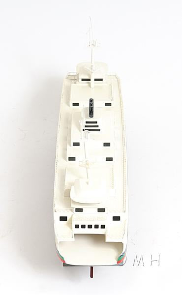 Our Washington Ferry model is truly one of a kind. It is made using the highest materials such as rosewood, mahogany, teak, ebony, and many more. It is carefully painted in original color: brown, red, green, teal, and white. The construction is absolutely incredible: see-through 3-D ship body from front to back and side to side, countless windows on three decks, first deck’s window is tinted in blue, wooden stairs, wooden navigation towers, metal fences around the top deck, painted windows, “Spokane” imprinted in white on both side on the front and back of the ship, and along with many more exclusive ornaments. This beautiful model is rested on a painted wooden stand with two firm crafted wooden frames sustaining it. This model is completely hand built by skillful and creative master craftsmen; you will be amazed with its formation and how astonishing it looks. Months of research goes into the planning of these model boats. Original plans and pictures are used for their design and realism. This wooden model boat is shipped fully-assembled and ready to be displayed.