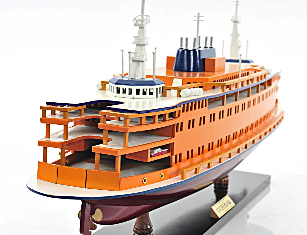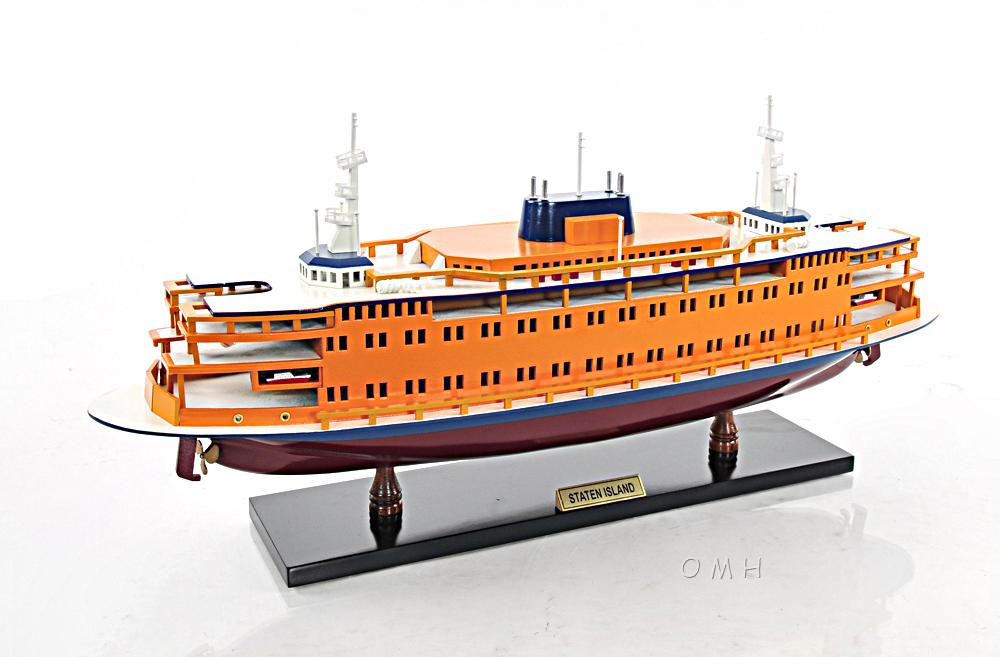 The Staten Island Ferry provides 20 million people a year (60,000 passengers a day not including weekend days) with ferry service between St. George on Staten Island and Whitehall Street in lower Manhattan. The ferry is the only non-vehicular mode of transportation between Staten Island and Manhattan. Have this historical ship displayed as a FULLY ASSEMBLED MODEL. Master craftsmen handcraft these highly detailed wood models from scratch using historical photographs, drawings and original plan. They are built to scale with high-grade wood such as: western red cedar, rosewood, and mahogany. They are 100% hand built individually using plank-on-frame construction method and are similar to the building of actual ships. Each model requires hundreds of hours to finish and must go through a demanding quality control process before leaving the workshop. The original colors of the Staten Island are accurately replicated in this model. All accent pieces are either made of wood or metal. The open window sills make the model authentic. Life boats are meticulously made from wood and painted. You can also notice other details such as the masts, railing, and barrels on the top deck. It is secured tightly on a solid wooden base. It’ll make a perfect gift for home or office decorator, boat enthusiast, or passionate collector.