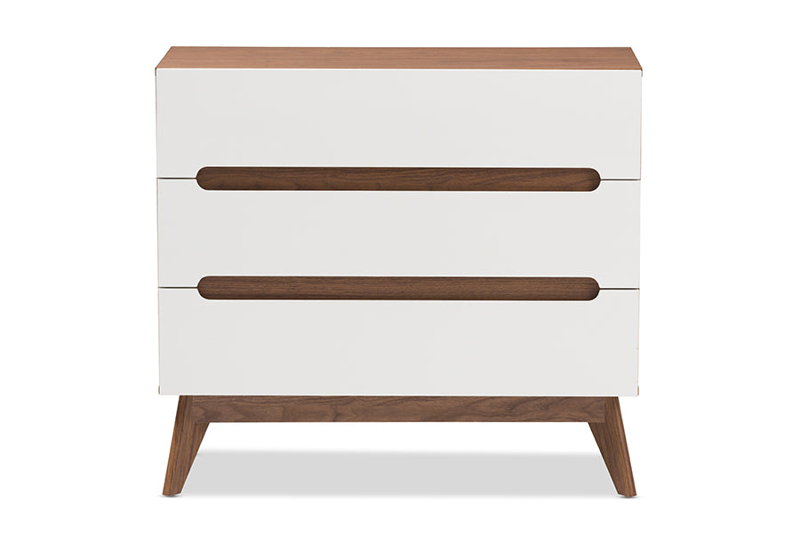 Baxton Studio Calypso Mid-Century Modern White and Walnut Wood 3-Drawer Storage Chest