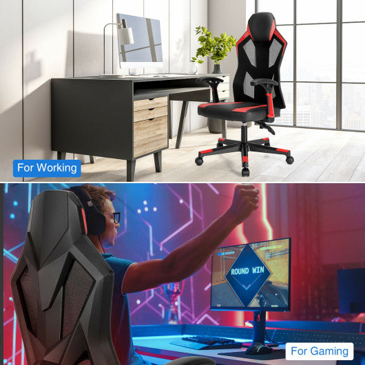 Still looking for a nice gaming chair or office chair? This ergonomic swivel chair is the perfect choice for you! This racing chair can not only improve your gaming experience but also serve as a comfortable computer chair for your daily work or study. The ergonomic high back perfectly conforms to the curve of body to achieve optimal comfort. And it is designed with breathable mesh fabric for added comfort. Supported by a heavy duty 5-claw base and ultra sturdy gas rod this gaming chair ensures excellent stability and bearing capacity. 5 flexible wheels offer fluent and quick motion. What's more this racing style chair features easy seat and back height adjustment 84-117° backrest tilt control comfy padded armrests and thick sponge cushion which can bring you a better using experience. If you are looking for a chair like this do not hesitate to place an order! 84-117° adjustable backrest for gaming reading working or resting Adjustable seat and backrest height to meet different needs Ergonomic high back provides strong support to your whole body Breathable mesh fabric allows better airflow and faster heat dissipation Heavy duty 5-claw base and sturdy gas rod ensure great stability and safety Thick sponge padded cushion and PU armrests offer ultimate comfort 5 smooth rolling casters provide free movement in all directions 360 degree swivel function offers convenience for multiple tasks Ideal for your living room study room bedroom office etc Maximum bearing capacity can reach 300 lbs Easy to assemble with the detailed instruction Installation guide