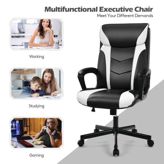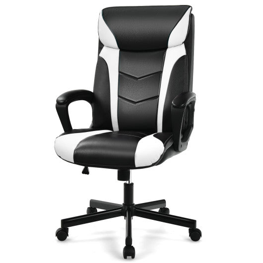 Swivel PU Leather Office Gaming Chair with Padded Armrest-White