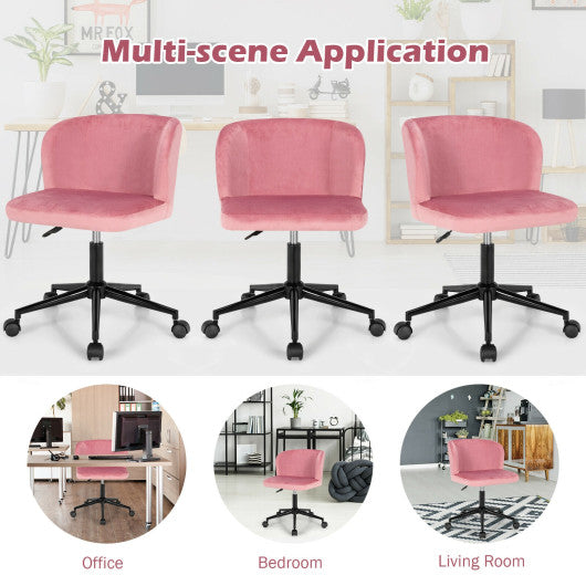 Armless Adjustable Swivel Velvet Home Office Leisure Vanity Chair-Pink