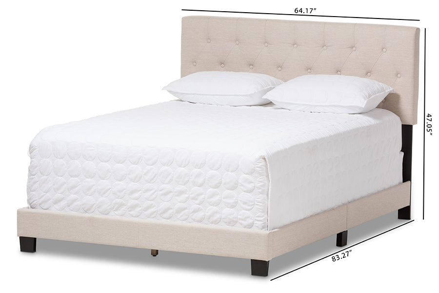 Baxton Studio Cassandra Modern and Contemporary Light Beige Fabric Upholstered Queen Size Bed
