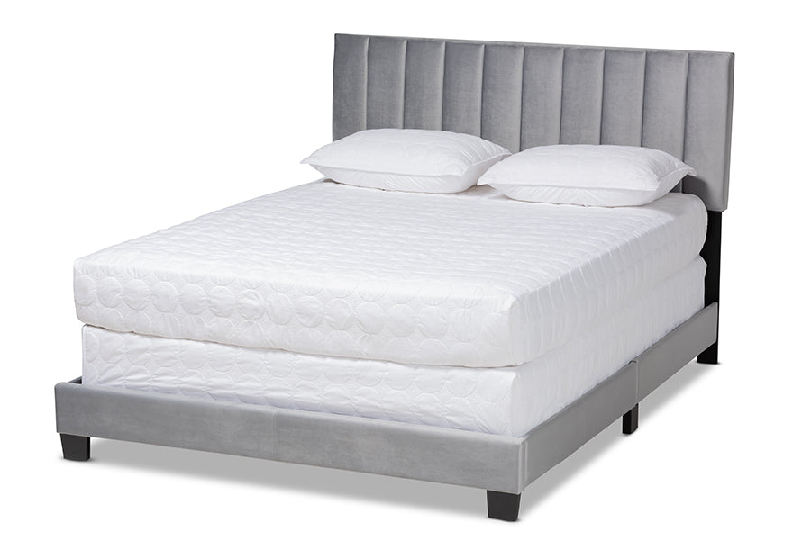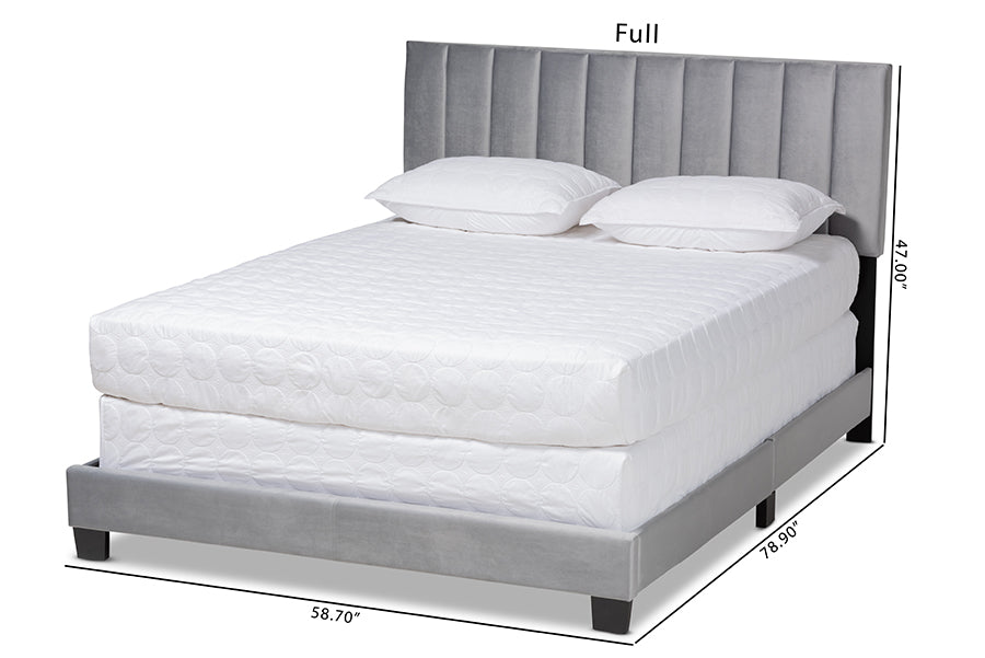 Baxton Studio Clare Glam and Luxe Grey Velvet Fabric Upholstered Full Size Panel Bed with Channel Tufted Headboard