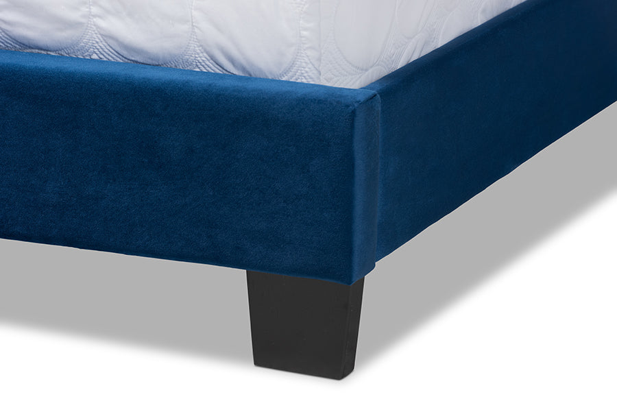 Baxton Studio Clare Glam and Luxe Navy Blue Velvet Fabric Upholstered Queen Size Panel Bed with Channel Tufted Headboard