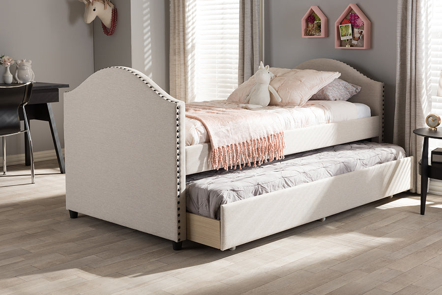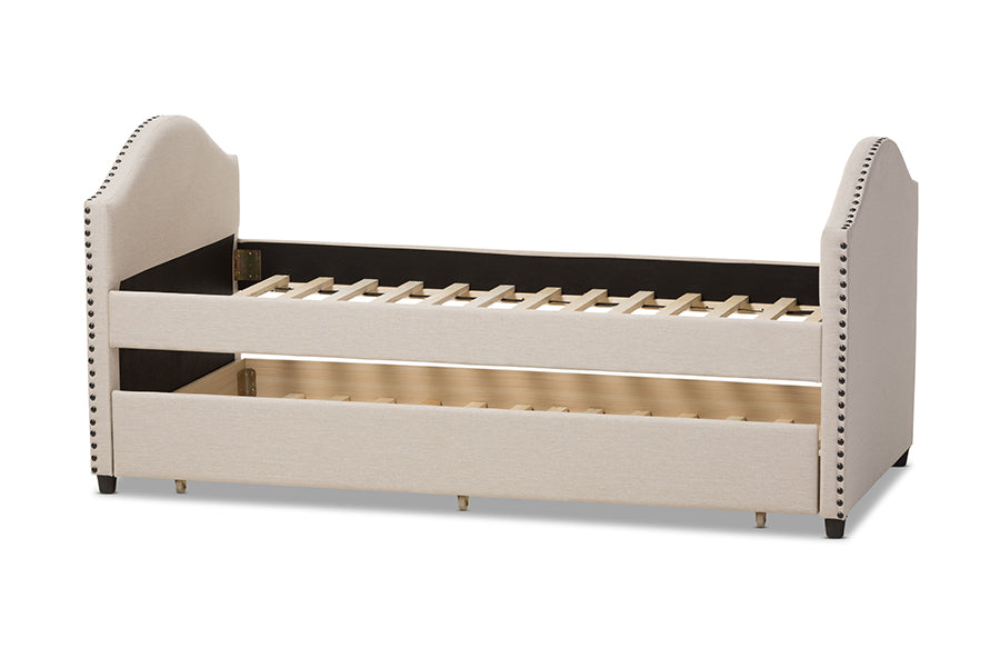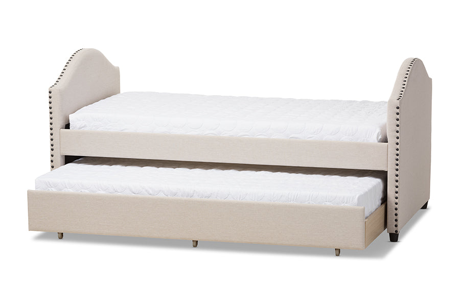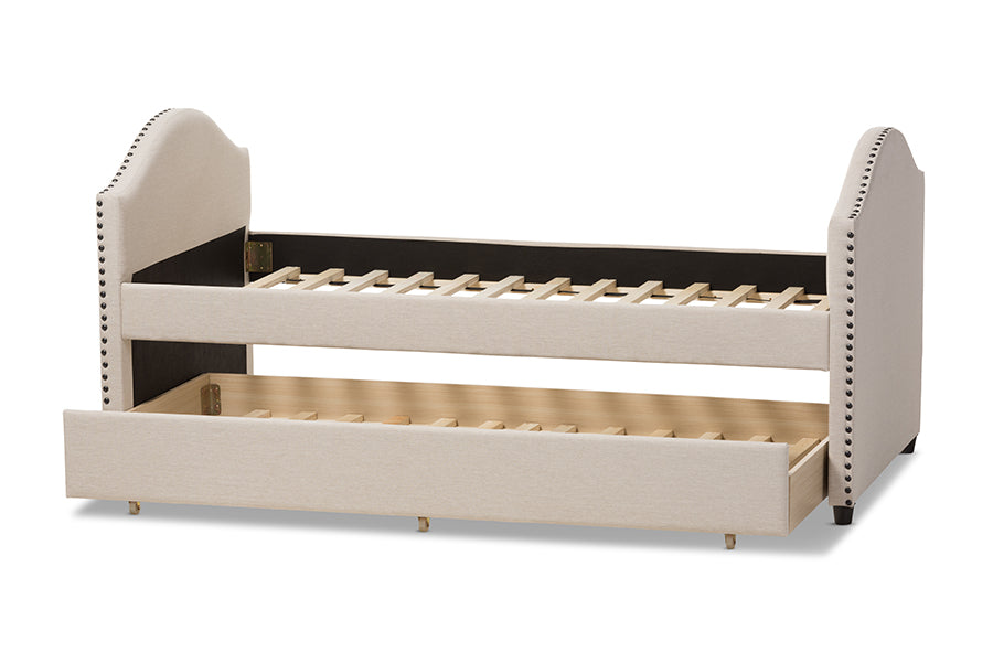 Baxton Studio Alessia Modern and Contemporary Beige Fabric Upholstered Daybed with Guest Trundle Bed