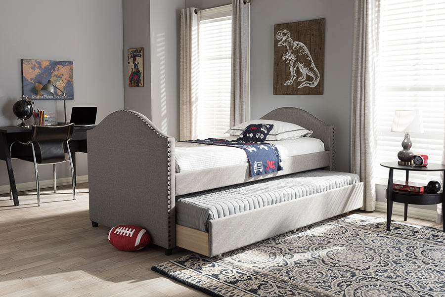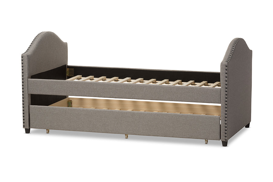 Baxton Studio Alessia Modern and Contemporary Grey Fabric Upholstered Daybed with Guest Trundle Bed