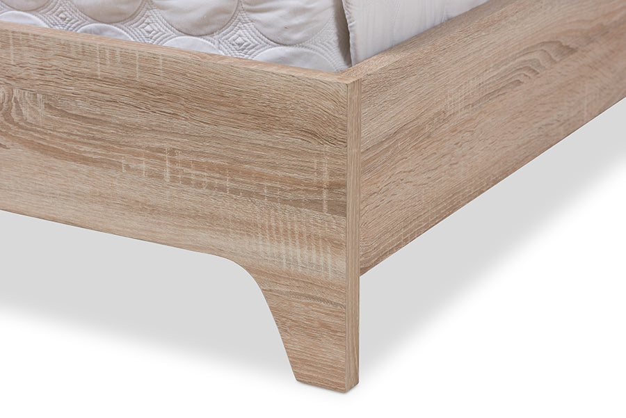 Baxton Studio Adelia Mid-Century Light Beige Whitewash Queen Size Platform Bed