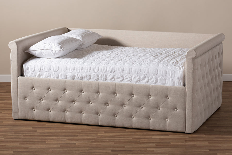 Baxton Studio Amaya Modern and Contemporary Light Beige Fabric Upholstered Full Size Daybed