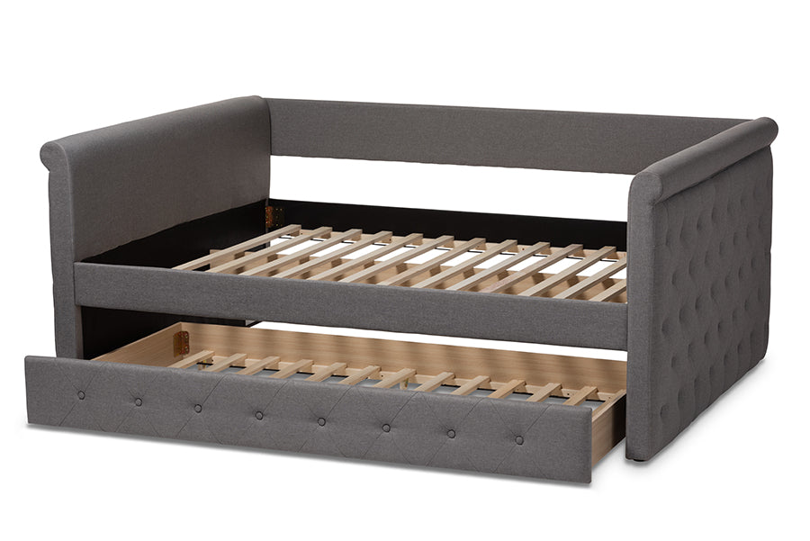 Baxton Studio Alena Modern and Contemporary Grey Fabric Upholstered Full Size Daybed with Trundle