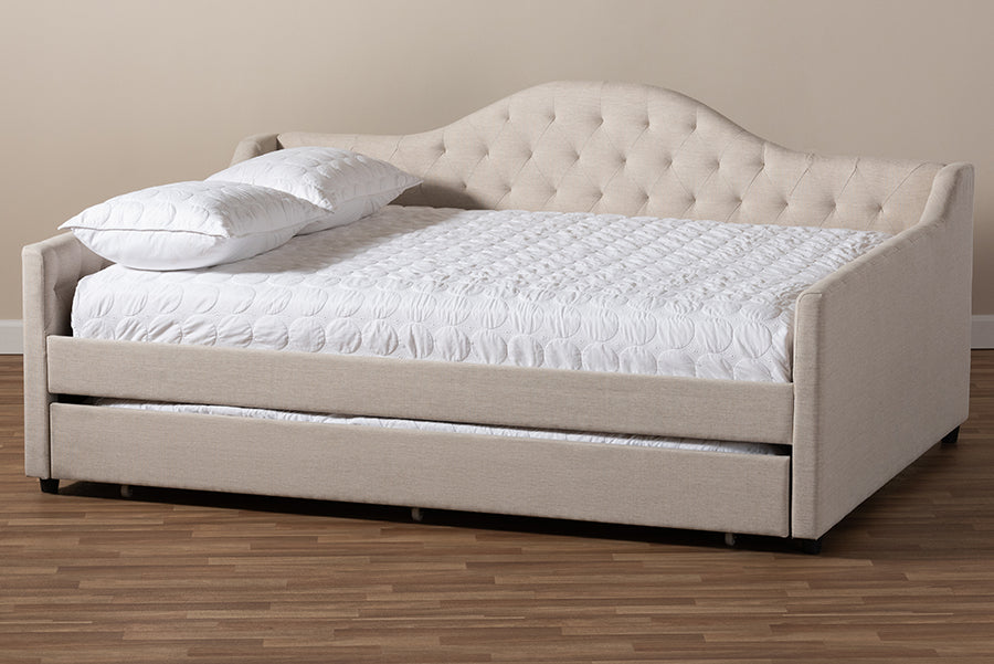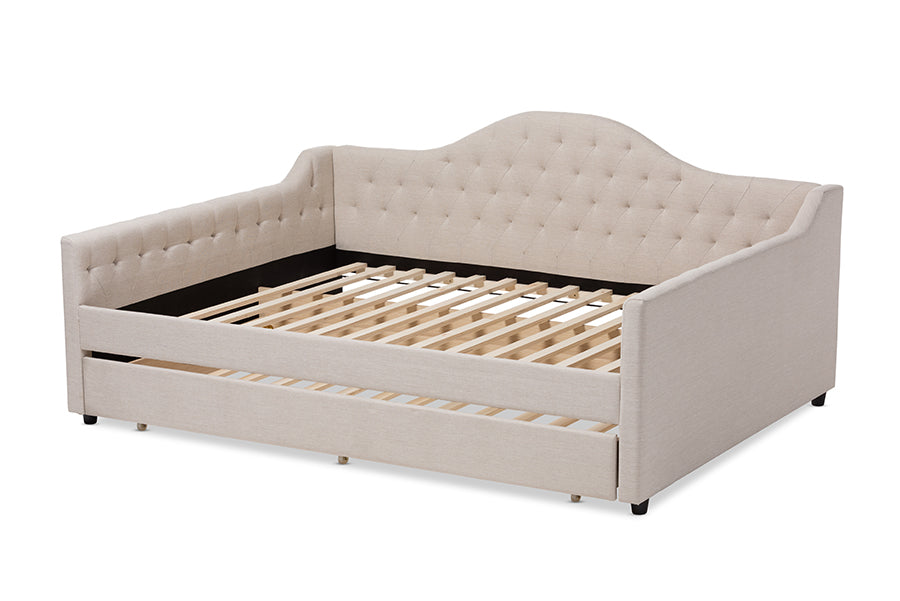 Baxton Studio Eliza Modern and Contemporary Light Beige Fabric Upholstered Full Size Daybed with Trundle