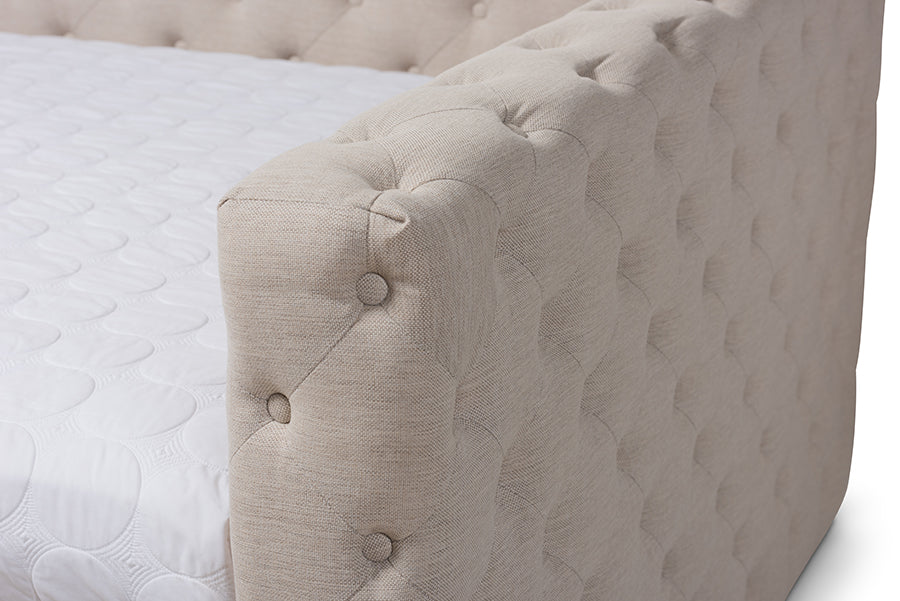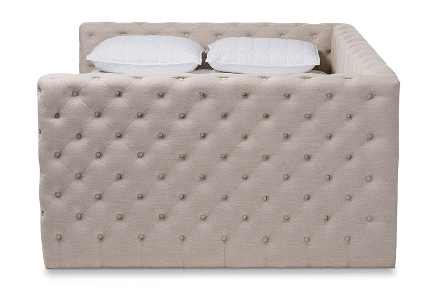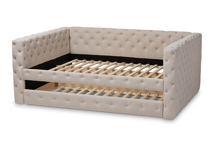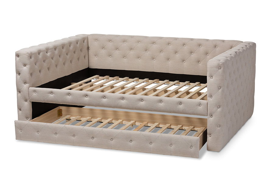 Baxton Studio Anabella Modern and Contemporary Light Beige Fabric Upholstered Queen Size Daybed with Trundle