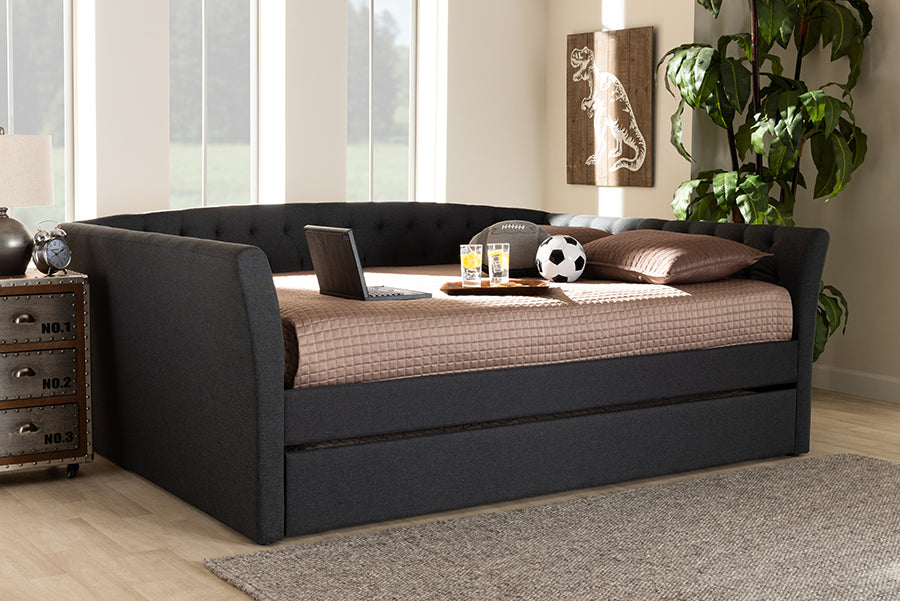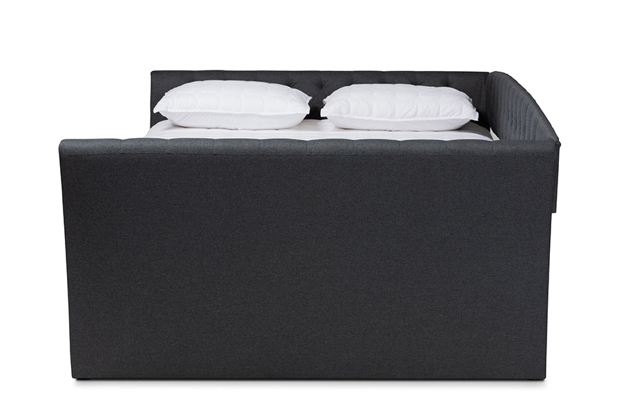 Baxton Studio Delora Modern and Contemporary Dark Grey Fabric Upholstered Full Size Daybed with Roll-Out Trundle Bed