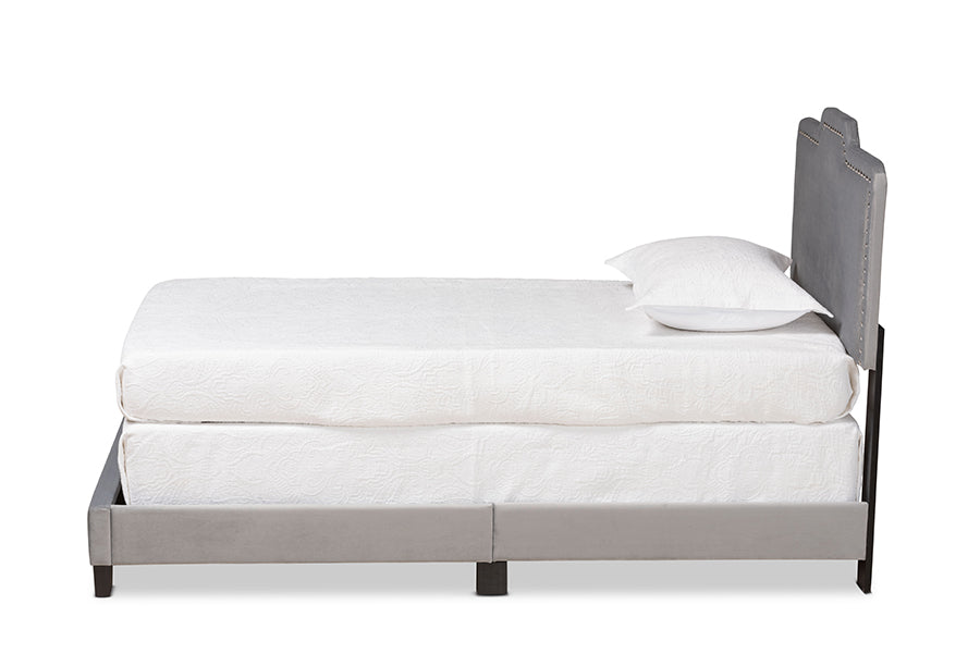 Baxton Studio Benjen Modern and Contemporary Glam Grey Velvet Fabric Upholstered Twin Size Panel Bed