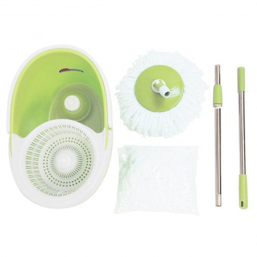 360° Rotating Head Easy Magic Floor Mop Bucket 2 Heads Microfiber Spin Spinning-green