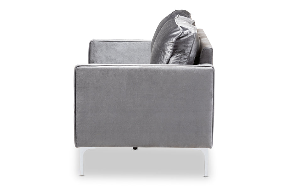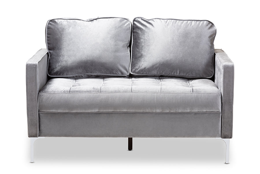 Baxton Studio Clara Modern and Contemporary Grey Velvet Fabric Upholstered 2-Seater Loveseat