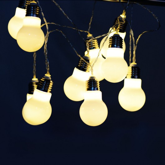 Specification: 10 lights string light: 7 ft string length (each ball distance: 8") 30 lights string light: 30 ft string length (each ball distance: 12") Style: Party wedding Christmas lights Type: Indoor/outdoor Color: White Ball size: 2" x 2.8" Power: 3*1.5 v Power source: 3 x AAA batteries (not included) Package include: 1 x Christmas string lights (not included the batteries)