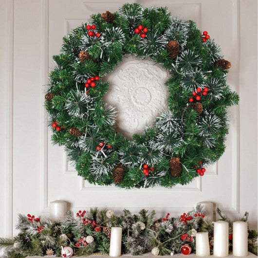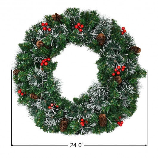 24" Pre-lit Christmas Spruce Wreath with 8 Flash Modes