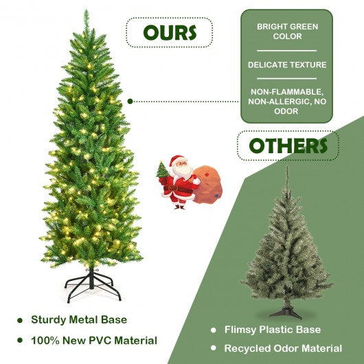 6 ft PVC Hinged Pre-lit Artificial Fir Pencil Christmas Tree with 150 Warm White UL-listed Lights-6'