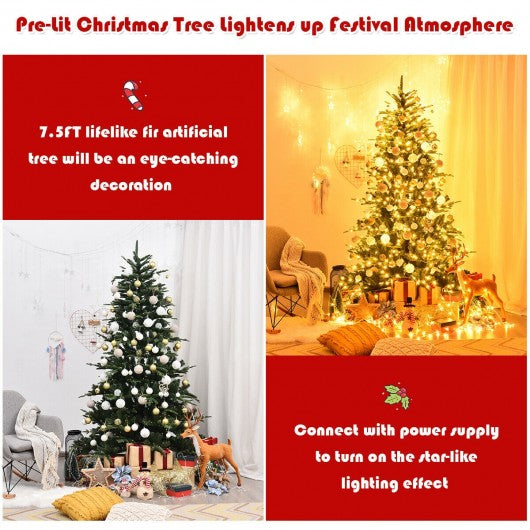7.5 ft Pre-Lit Aspen Fir Hinged Artificial Christmas Tree with 700 LED Lights