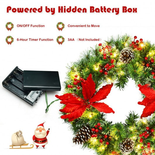 24" Pre-lit Artificial Christmas Wreath Battery Operated