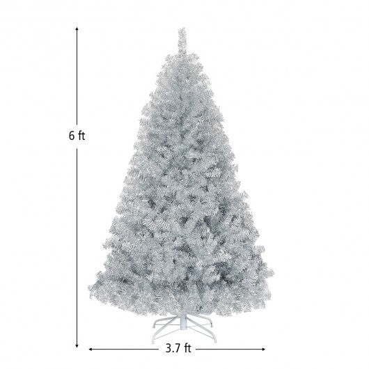 6ft Hinged Unlit Artificial Silver Tinsel Christmas Tree Holiday with Metal Stand