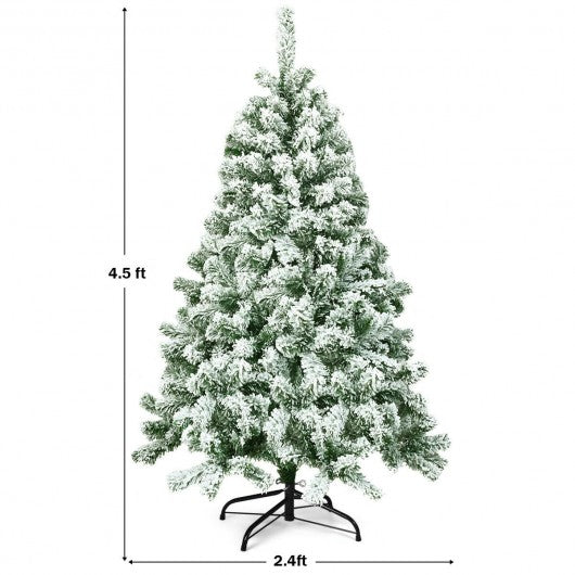4.5 ft Snow Flocked Artificial Christmas Tree with 400 Tips and Foldable Base