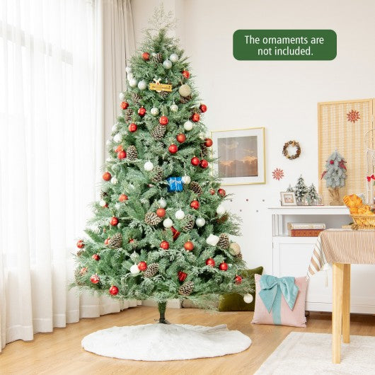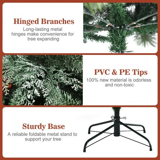 8 ft Snow Flocked Hinged Christmas Tree with 1651 Branch Tips and Pine Cones