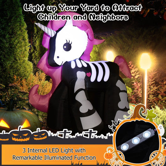 5.5 Feet Halloween Inflatables Skeleton Unicorn with Built-in LED Lights