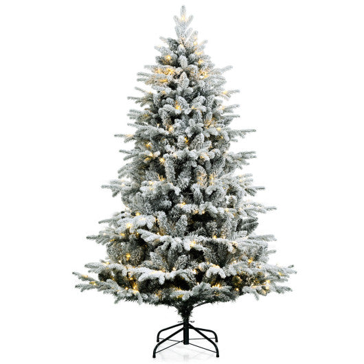 May you happy New Year and a happy Christmas! This snow-flocked Christmas tree with hinged branch construction goes up fast leaving more time for holiday cheer. The mixed PE and PVC leaves are made of flame retardant and non-toxic material. These durable branches offer strong support to decorative ornaments allowing you to DIY the Xmas tree with your family. With a realistic appearance this 6 feet tree looks like a real pine tree covered by thick snow. It is also equipped with 260 LED lights. The warm white color of the lights is welcomed by people. Plug in the adaptor and enjoy the warm atmosphere at home. Decorations and ornaments are not included. If you are looking for a Christmas tree like this do not hesitate to place an order! 1415 branch tips endow the tree with a dense and full appearance Snow flocked Xmas tree looks as natural as a real pine tree Hinged branch construction greatly shortens the setup time An attractive 6 feet holiday festival tree great for indoor decoration Equipped with 260 LED lights to warm up the room atmosphere PE and PVC leaves with different shapes make the tree vivid A folding metal stand ensures the stability of the Christmas tree The adaptor is certified by UL for safety use