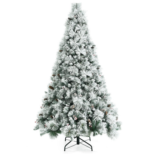 7 Feet Snow Flocked Christmas Tree with Pine Cone and Red Berries