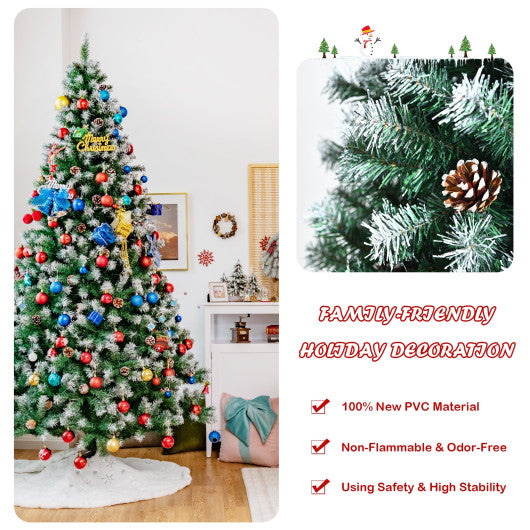 Artificial Snow Flocked Christmas Tree with Pine Cones