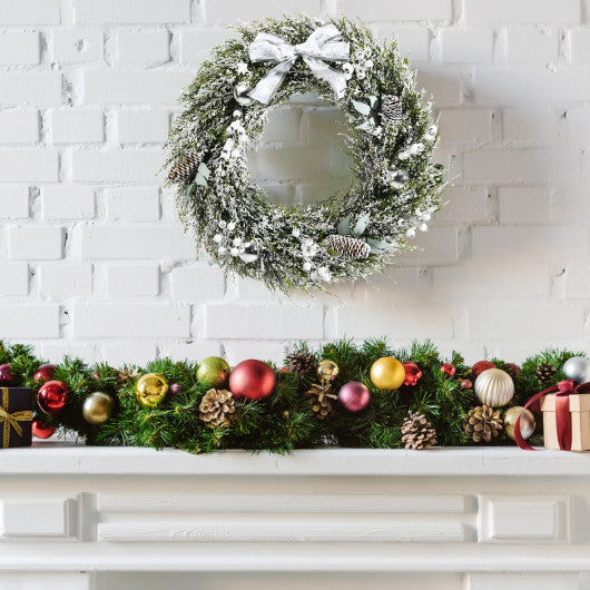 24 Inch Snowy Artificial Christmas PE Wreath with Pine Cones