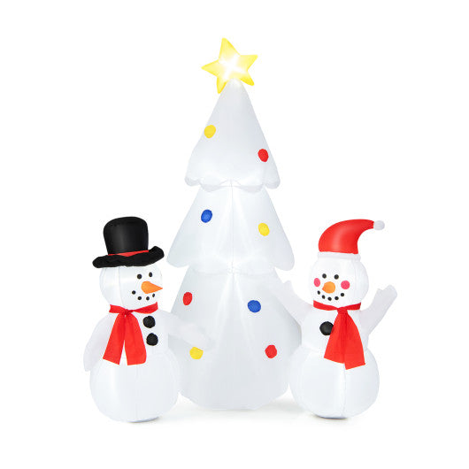 The combination of smiling snowman and big Christmas tree makes the inflatable Christmas decoration more attractive. Besides the glowing LED lights offers a perfect nighttime display bringing joy to your family and friends. All you need to do is plug in and it will complete inflation process within 1 minute. Moreover durable polyester fabric features waterproof abrasion resistant and tear resistant ensuring longer service life. The built-in sandbags ground stakes and fixed ropes also greatly improve its stability without worries about blow away in bad weather. After deflation you can store it in a corner for next use. If you are looking for a inflatable Christmas tree like this do not hesitate to place an order! Perfect indoor and outdoor decoration for celebrating Christmas Inflatable Xmas tree and lovely snowman fit well with the whites of snow days Tall inflatable Christmas tree makes an eye-catching decoration in the yard Light up in the evening to attract your kids friends and neighbors Durable polyester fabric features waterproof and abrasion resistant Powerful air blower for easy inflation within 1 minutes Smooth zipper brings much convenience for deflation Comes with sandbags ground stakes and ropes for higher stability Store the inflatable Christmas decor away for next time use Ideal for indoor backyard lawn front door and party etc