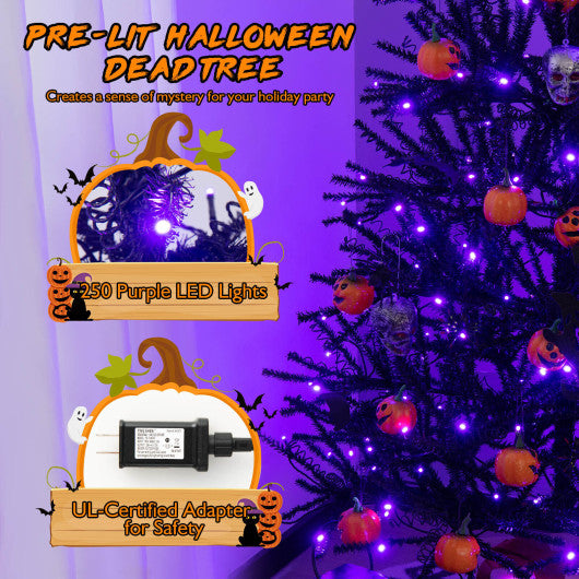 6 Feet Pre-Lit Hinged Halloween Tree with 250 Purple LED Lights and 25 Ornaments