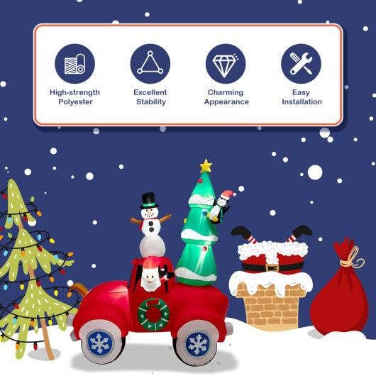 8 Feet Tall Inflatable Santa Claus on Red Truck with LED Lights