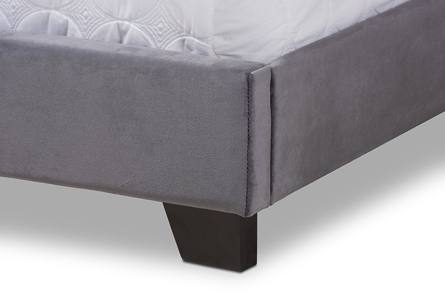 Baxton Studio Darcy Luxe and Glamour Dark Grey Velvet Upholstered Queen Size Bed