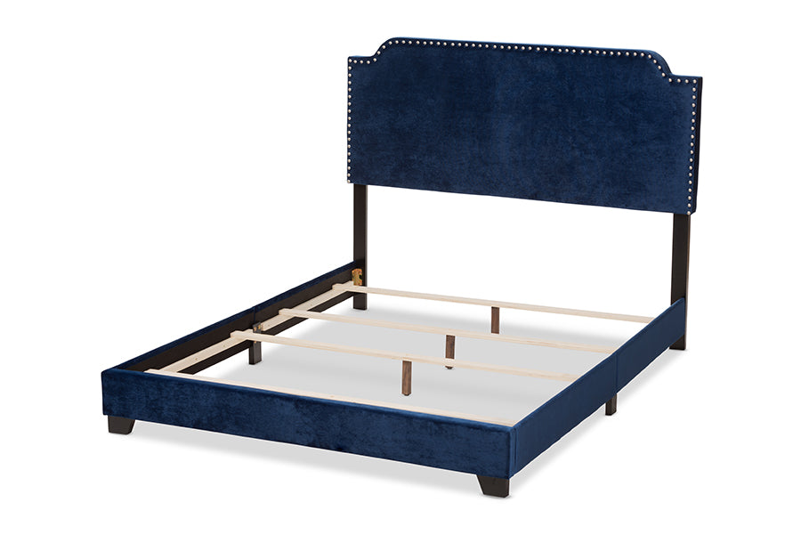 Baxton Studio Darcy Luxe and Glamour Navy Velvet Upholstered Queen Size Bed