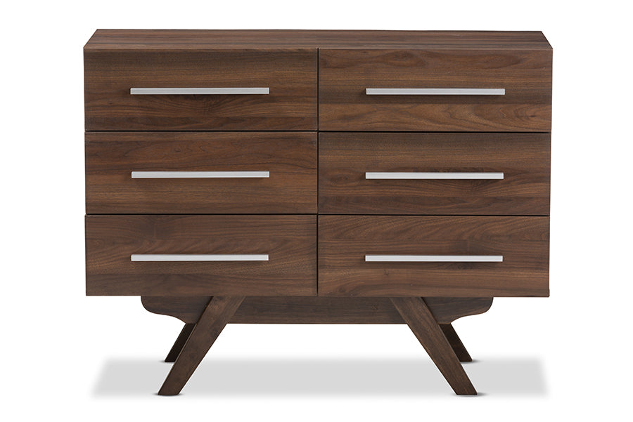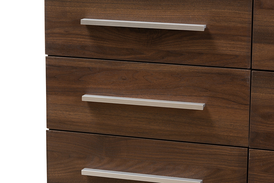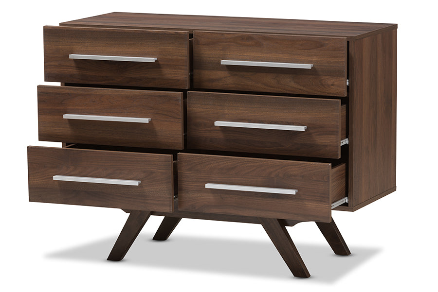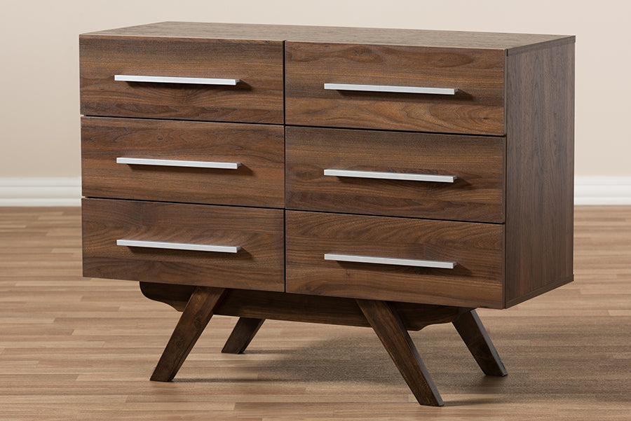Baxton Studio Auburn Mid-Century Modern Walnut Brown Finished Wood 6-Drawer Dresser