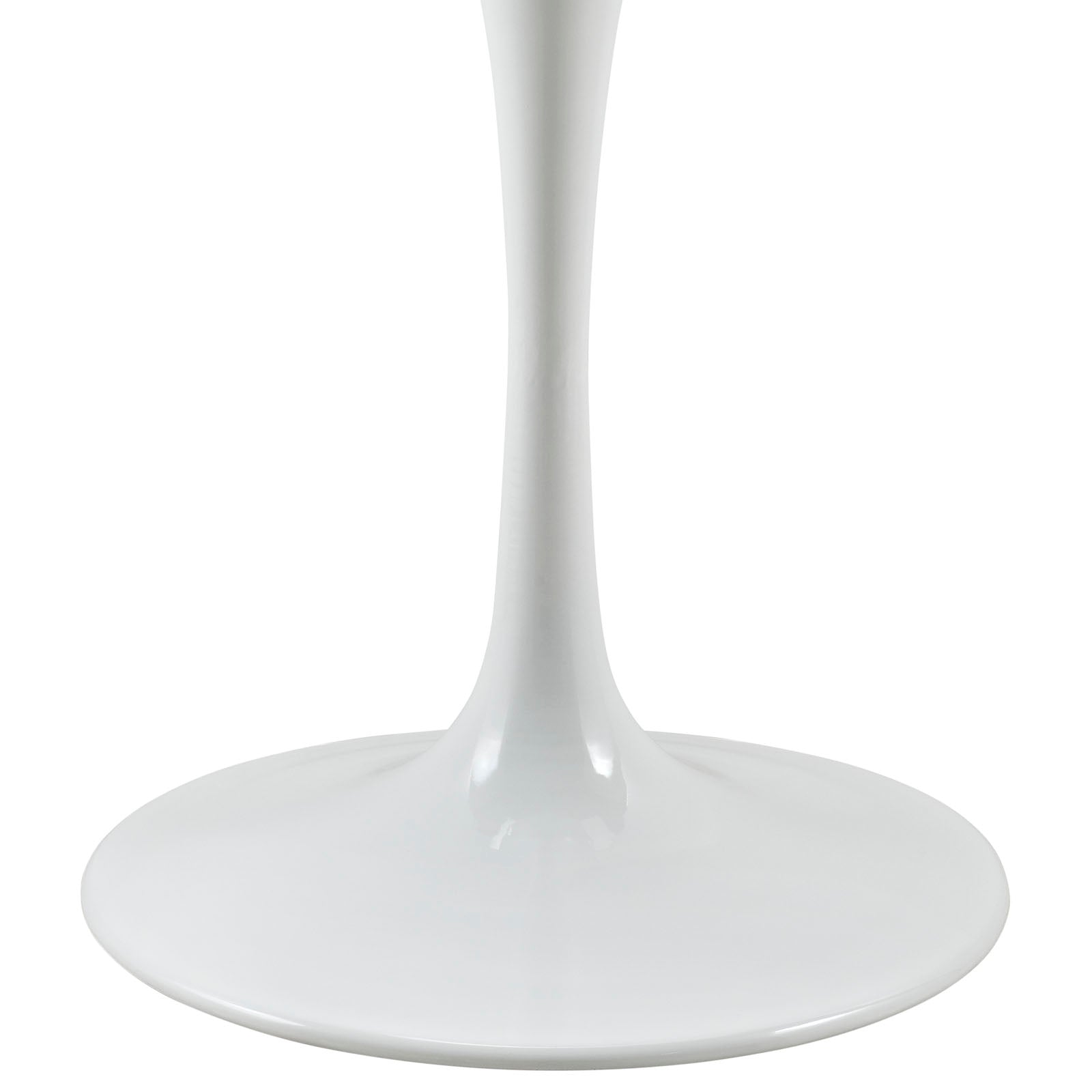 Reflecting a seamless organic shape and timeless form, the Lippa dining table has become a symbol of modernism for over the past 60 years. Before its release, homes were filled with clunky remnants of an industrial age long gone by. But in order to advance into the new world, homes first had to transition from the traditional square table, into a piece that connoted progress. The base and dimensions are true to the original specifications, while the table's circular white top and metal tapered base are carefully lacquered with a chip-resistant finish.