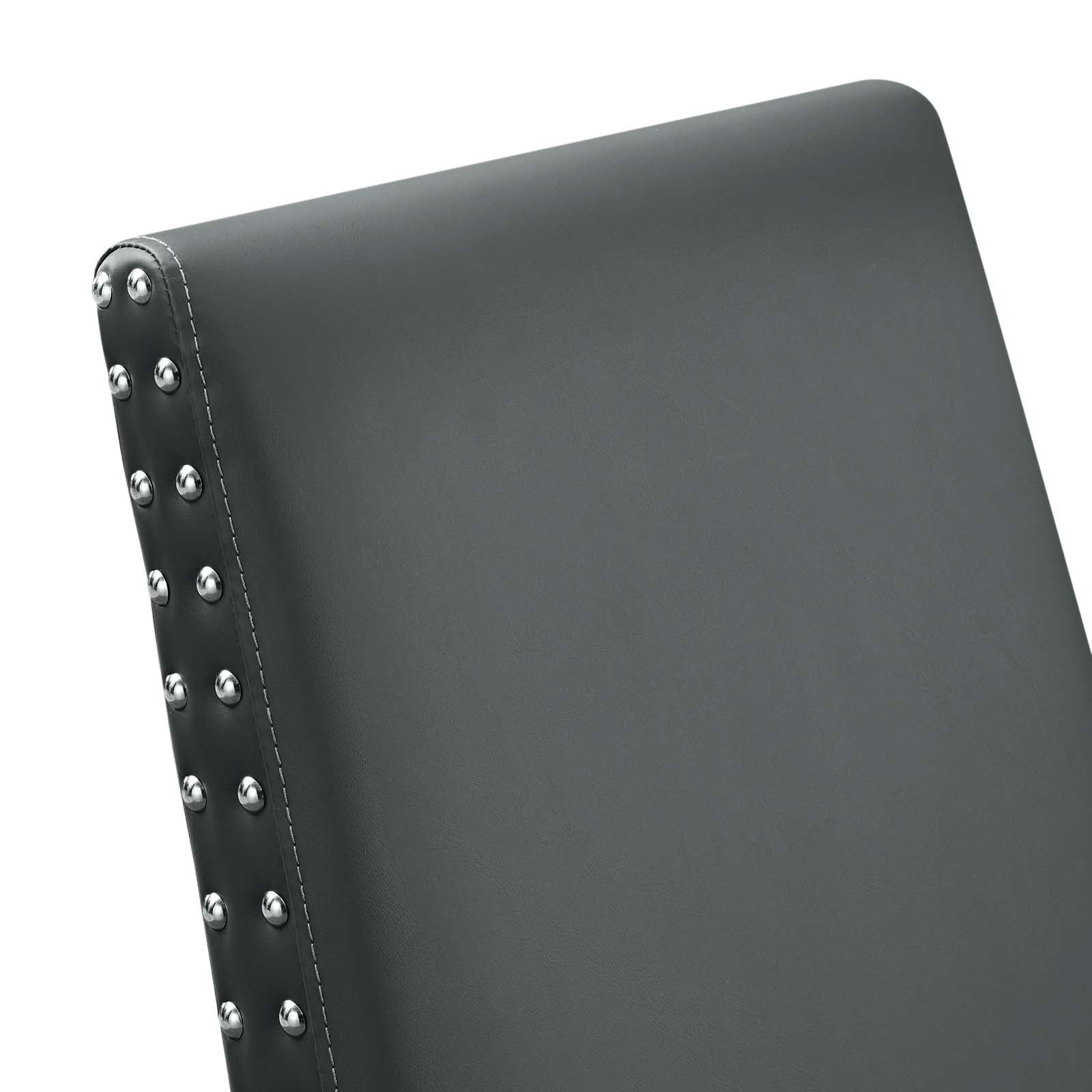 • Bullets: Modern Accent Chair Faux Leather Upholstery Nailhead Trim Accents Dense Foam Padding Black Stained Tapered Wood Legs Contemporary Dining Chair Chair Weight Capacity: 285 lbs.