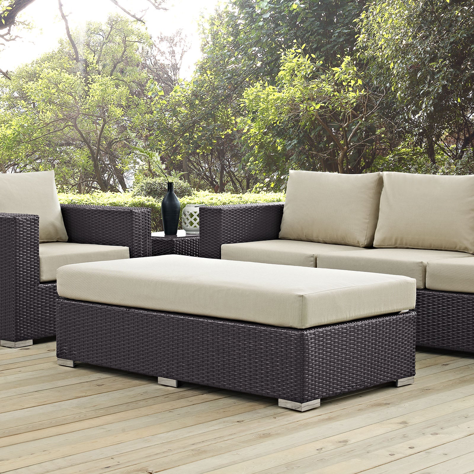 Convene Outdoor Patio Fabric Rectangle Ottoman