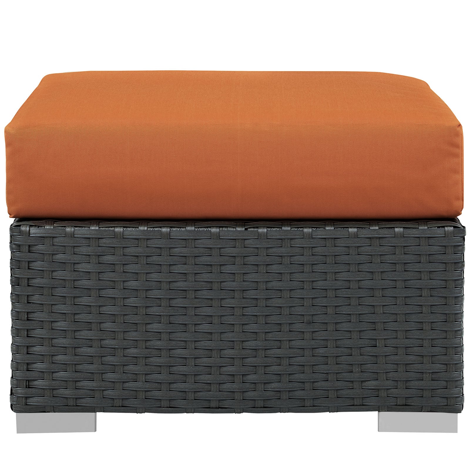Outfit your patio with an imaginative Sojourn Outdoor Patio Furniture series. The Sojourn Outdoor Patio Ottoman offers a robust seating experience that easily rearranges according to usage. Outfitted with industry-leading Sunbrella® fabric cushions, synthetic rattan weave, UV protection, powder-coated aluminum frame, immensely enjoy your outdoor time with an outdoor wicker ottoman that enhances patio, backyard, or poolside areas. This installment of the series is an Outdoor Patio Ottoman. Set Includes: One - Sojourn Ottoman