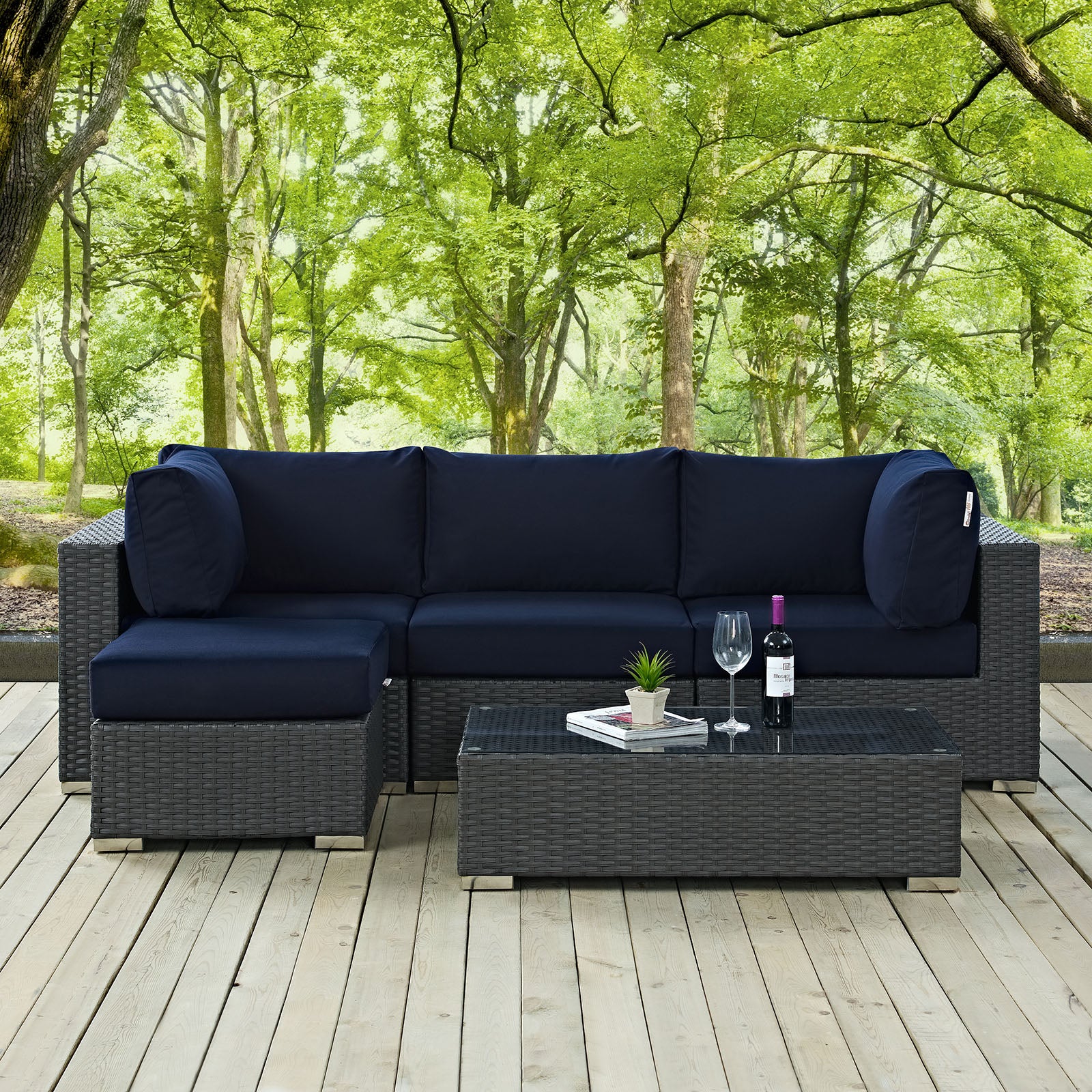 Sojourn 5 Piece Outdoor Patio Sunbrella Sectional Set
