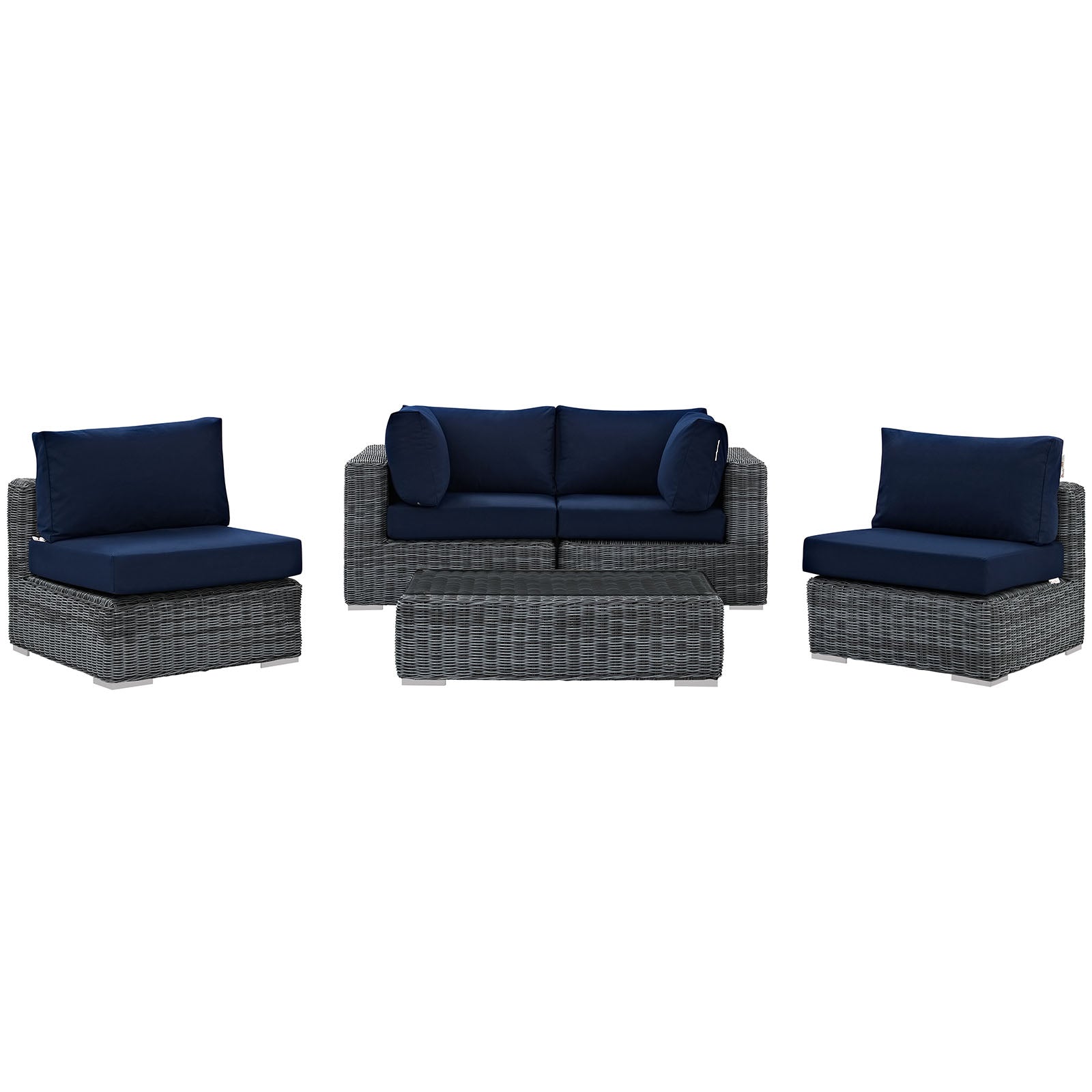 Summon 5 Piece Outdoor Patio Sunbrella Sectional Set