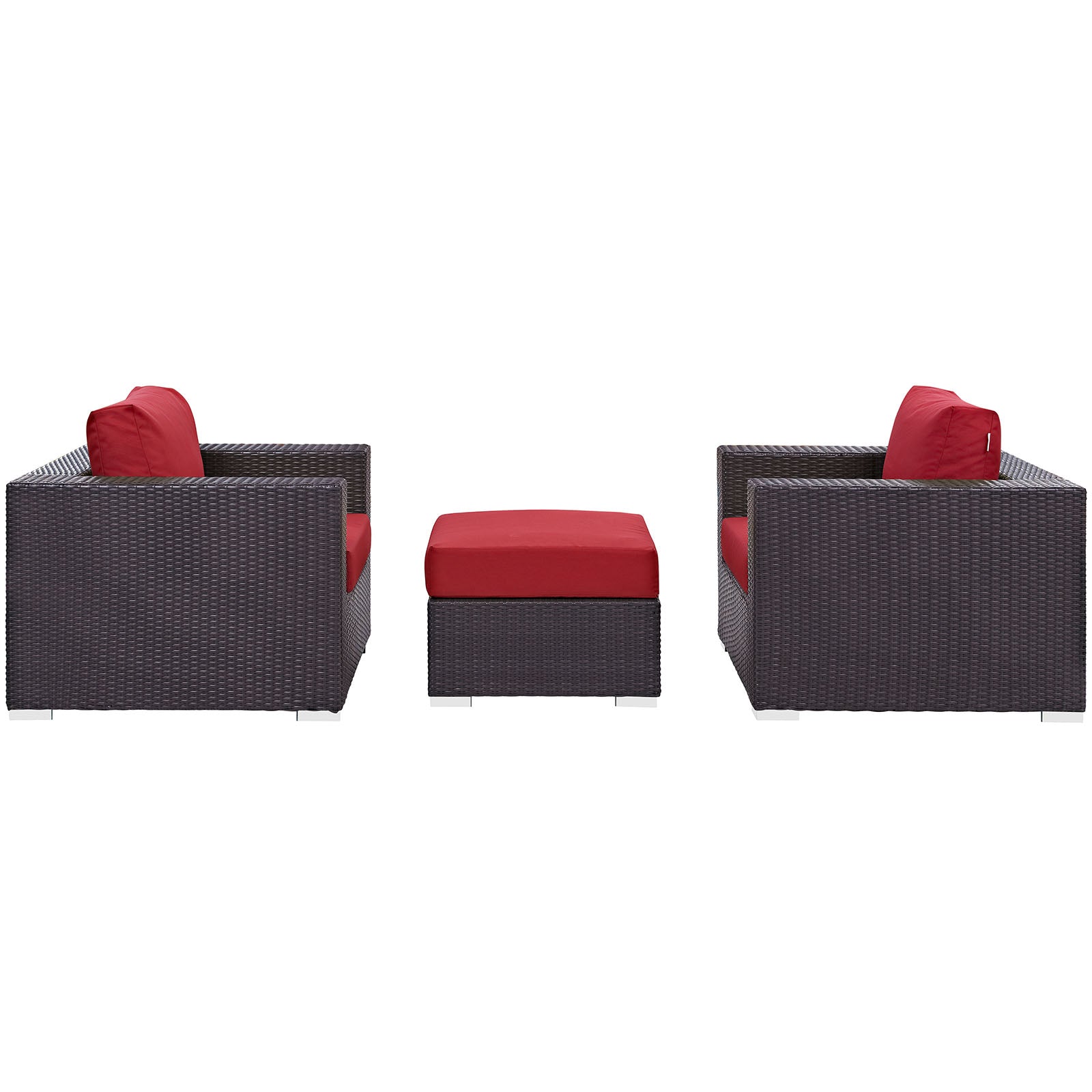 Convene 3 Piece Outdoor Patio Sofa Set EEI-2174-EXP-RED-SET