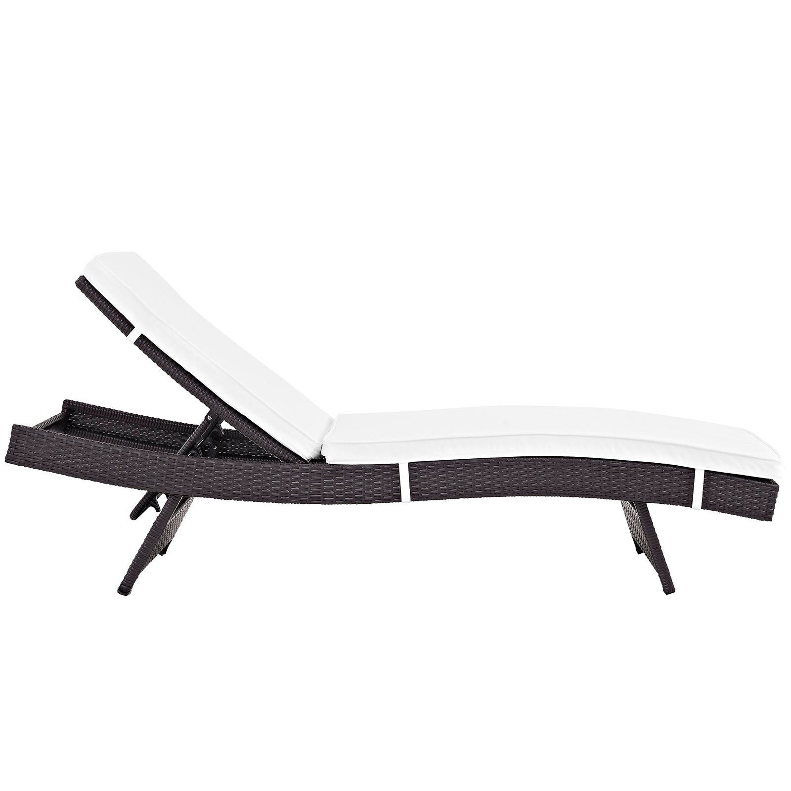 Gather stages of sensitivity with the Convene Outdoor Sectional series. Made with a synthetic rattan weave and a powder-coated aluminum frame, Convene Patio Lounge Chair is a versatile outdoor collection that shifts and combines according to the spontaneous needs of the moment. Outfitted with all-weather fabric cushions, this deck chair leaves a positive impression on friends and family while enhancing your patio, backyard, or poolside repast in this series of palpable distinction. This installment of the series is an Outdoor Reclining Patio Chaise. Set Includes: One - Convene Outdoor Patio Chaise