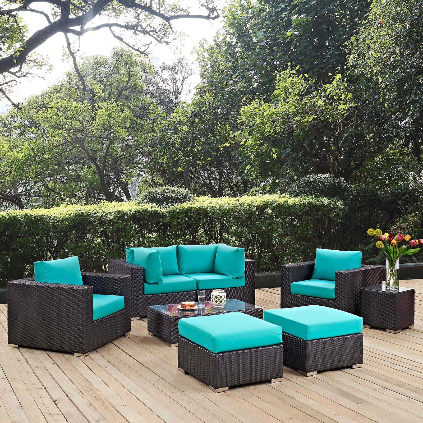 Convene 8 Piece Outdoor Patio Sectional Set EEI-2206-EXP-TRQ-SET