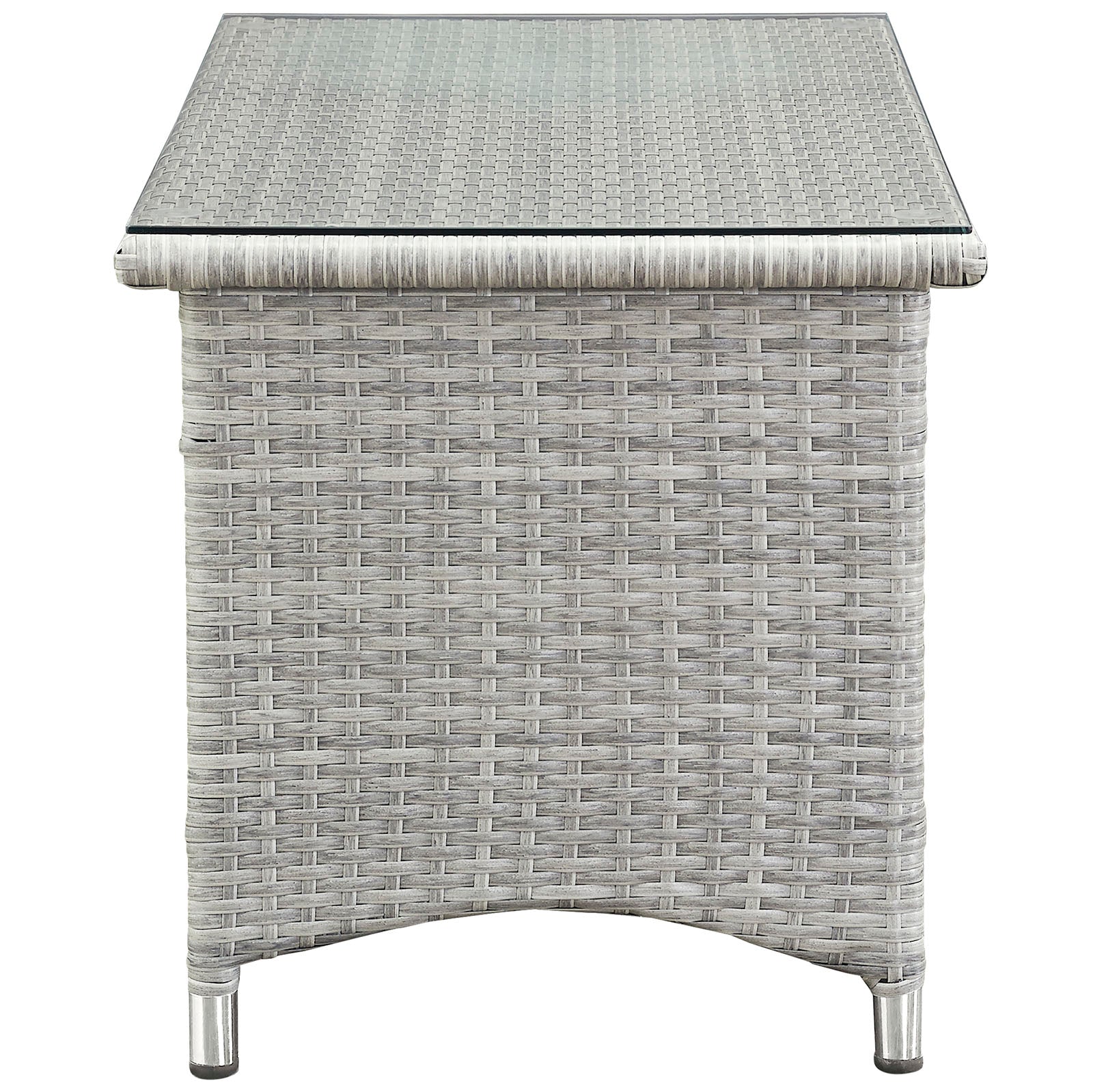 Express yourself with the exquisitely detailed Bridge Outdoor Rattan Conversation Set. Made from elegant tone-on-tone gray rattan with a distressed chic design, Bridge features a durable powder coated aluminum frame, non-marking foot caps, tempered glass top coffee table, and all-weather cushions. Bridge works well in contemporary patios, backyards and poolside areas, and is built to last you through many enjoyable moments together with company. Set Includes: One - Bridge Cofee Table One - Bridge Loveseat Two - Bridge Armchair.